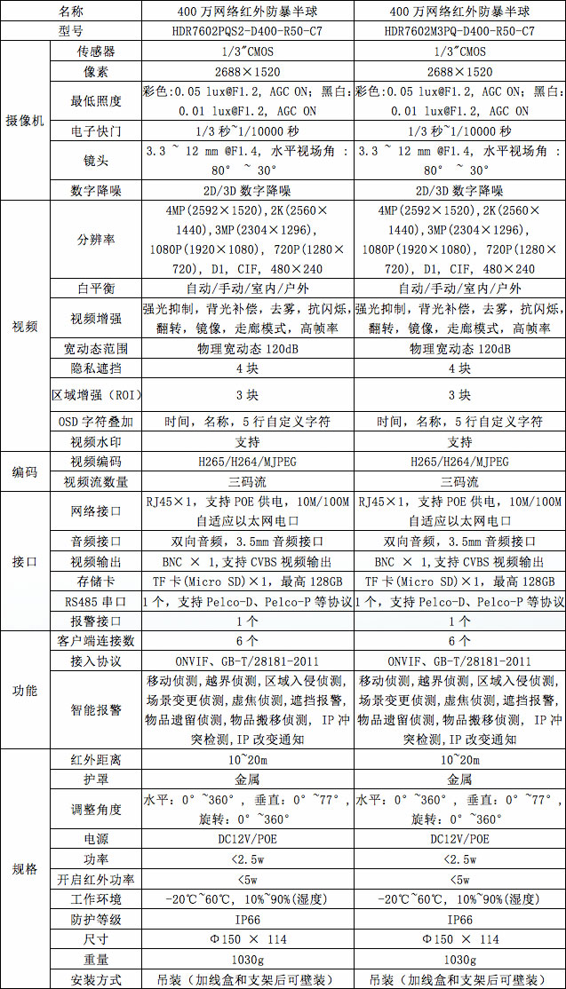 型号:HDR7602PQS2-D400-R50-C7