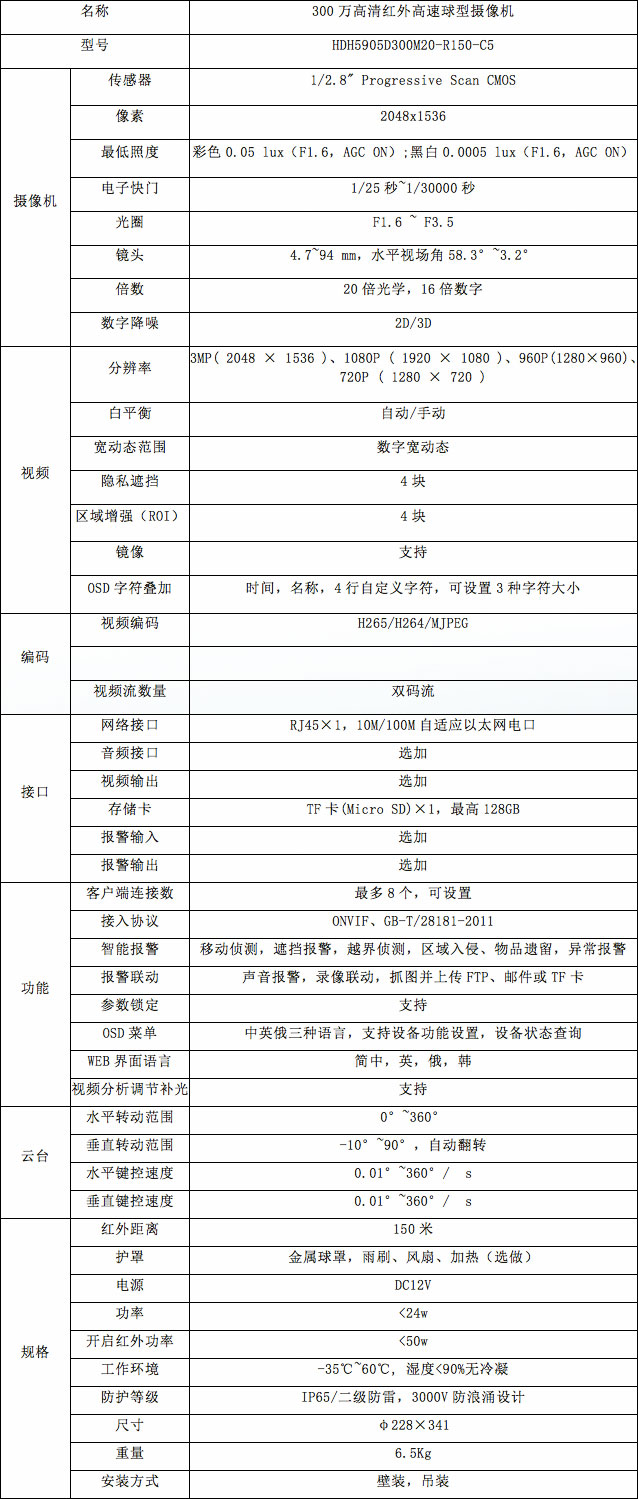 300万高清红外高速球型摄像机